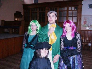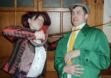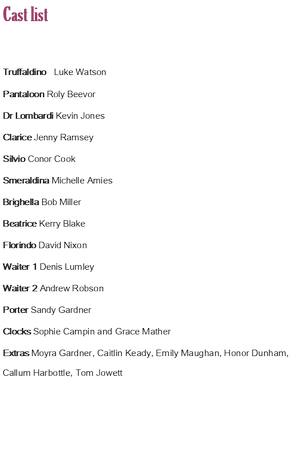 Based on the Commedia Dell’ Arte characters and set in characteristic and colourful Italian style – with physical comedy, masks and a modern dialogue, we follow the adventures of Truffaldino. He’s the classic wily servant who is trying to fill both his wallet and his stomach and hits on the scam of serving two masters at once. His hectic “downsizing of the service economy” hits trouble when he finds himself embroiled in a tangle involving a dowry, thwarted love and a cross dressing heroine.There is much comic chaos before he he gets his girl – and the banquet - in the end!