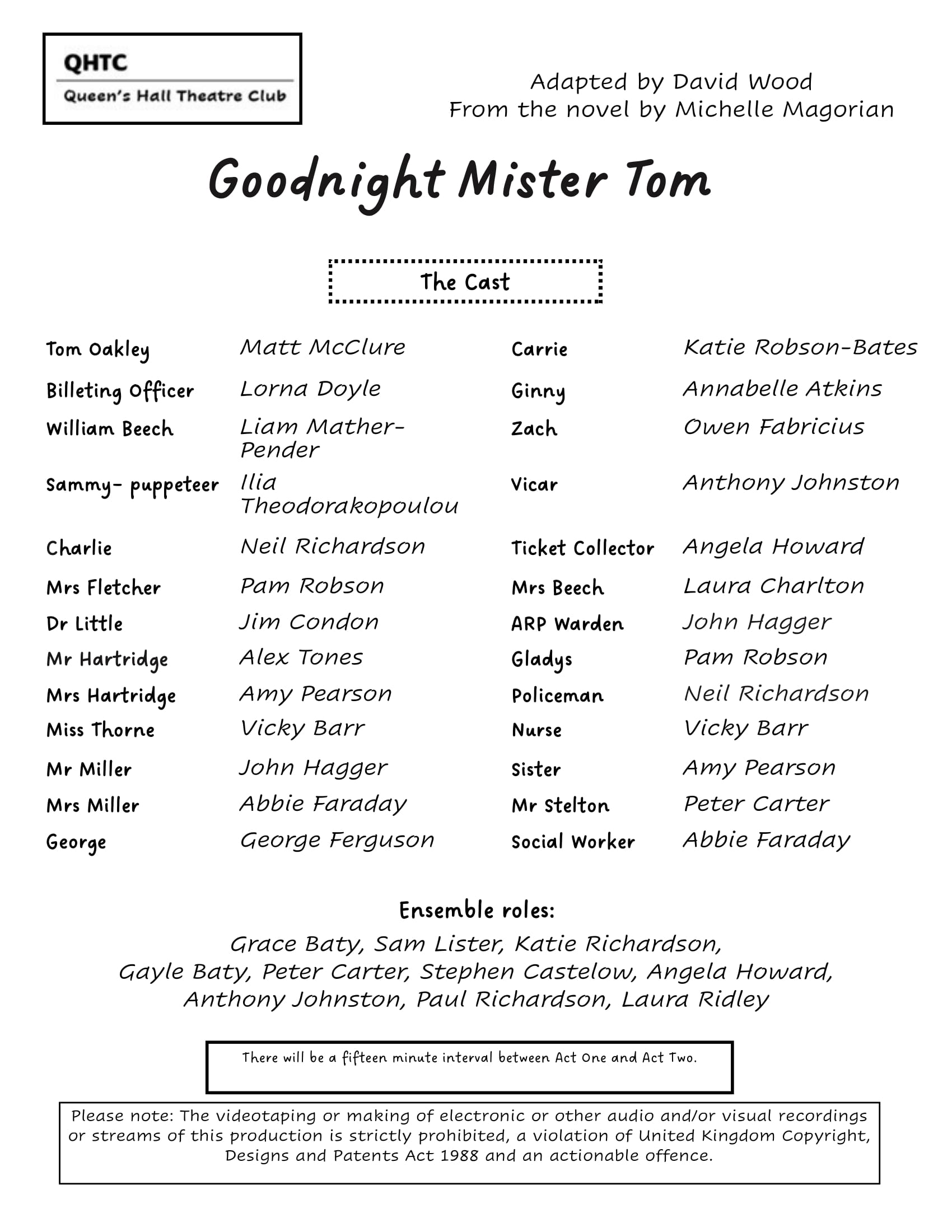 This Olivier Award-winning adaptation unfolds a story of real emotional depth and power. The warm-hearted villagers support and value the little boy, and Tom works through his own grief and regret to build a relationship with William which saves them both.