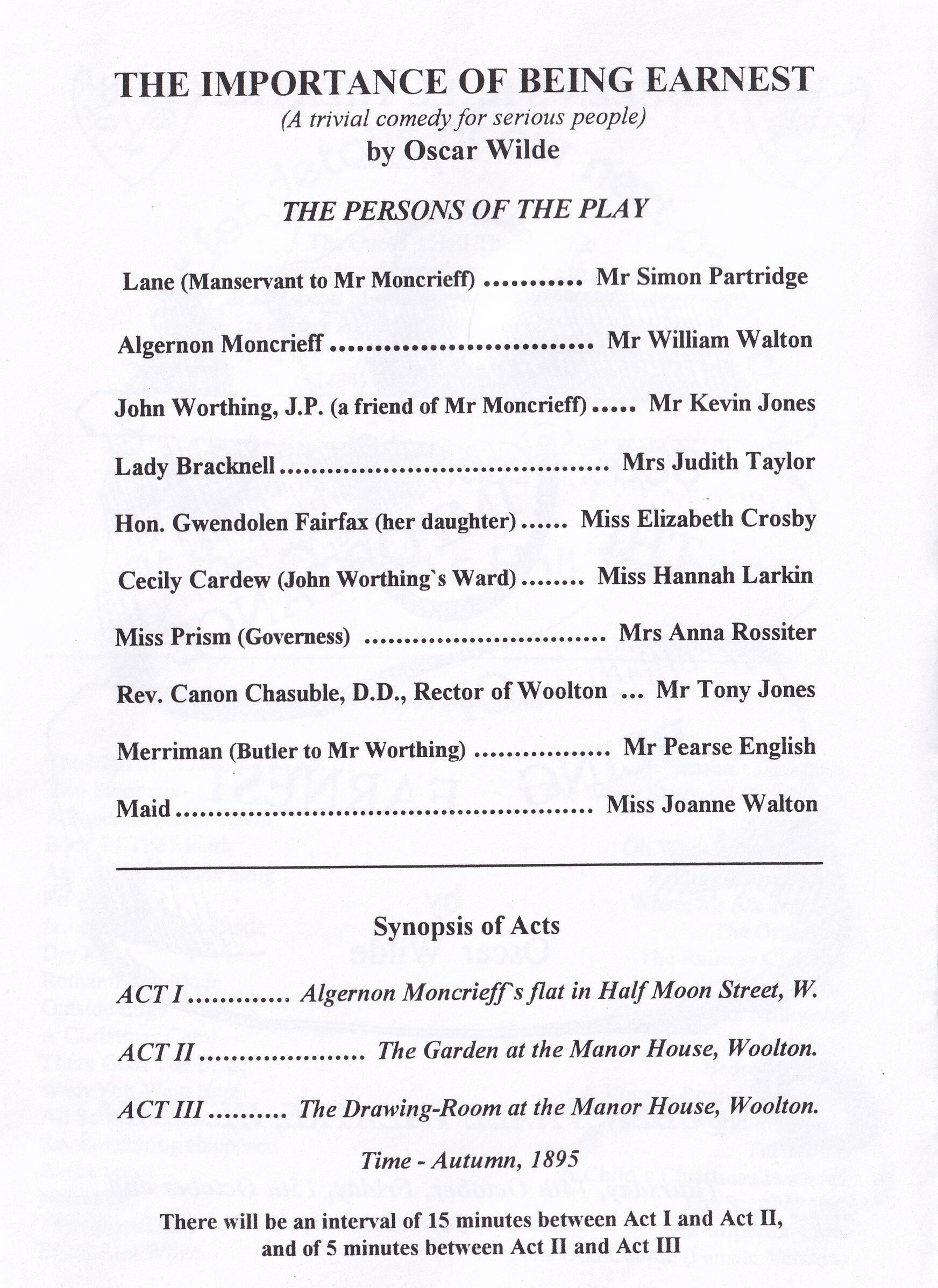 Overflowing with style and wit– and much quoted lines “ A handbag!” being probably the most famous. A string of hilarious characters drive a plot based on courtship and engagement – a long-lost child – double lives – manners and whimsy – presided over by that redoubtable dragon Lady Bracknell.