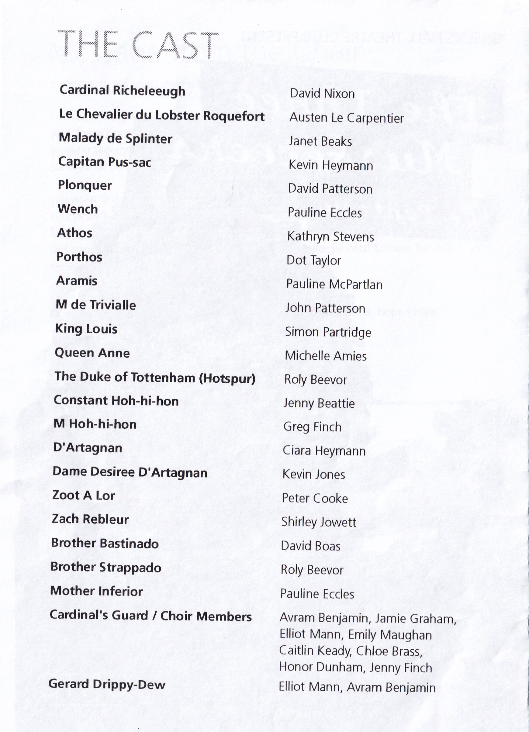 The story of a young boy who wants to see the world and fight baddies! Here we find those famous swashbucklers, Porthos, Aramis, Athos and D’Artagnan, effortlessly recast as a bevy of roistering, thigh slapping lovelies – Principal Garcons par excellence. Throw in the despicable Cardinal Richeleeugh, his debauched sidekick Le Chevalier Du Lobster Roquefort, a clutch of other eminently hissable villains, plus a giant pantomime snail, and you have all the ingredients for un panteau cordon bleu. This show gives the ladies a fair crack of the whip. And the chance to show they can roister and swashbuckle with the best of them!